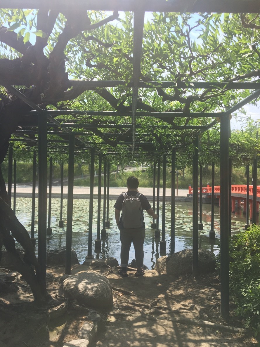 공원은 아름답게 가꾸어져있고 연못에는 튼실한 잉어들이 헤엄치고 있었습니다.