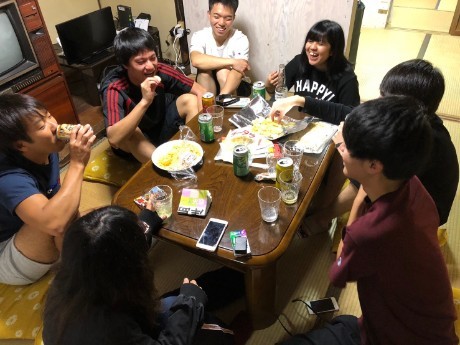 旅の写真を見返しながらみんなでご飯。
