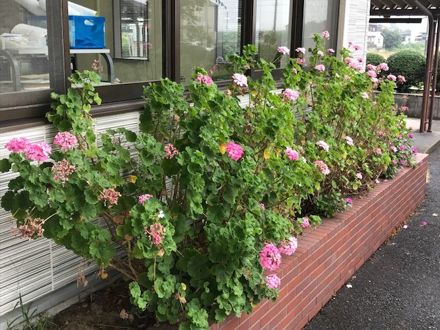 | メッセージ | 神島田公民館の花壇では、ゼラニウムが毎年、春から秋の終わりまでピンクの花を咲かせています。花詞は一般に「尊敬」「信頼」「真の友情」だそうです。ピンクの花は、さらに「決心」「決意」西洋で「疑い」という花詞を持っているようです。つまり、〈さまざまなことに「疑い」を抱き、好奇心、向学心をもって解決する「決心」「決意」をし、生涯学習の場である公民館にみんなで集う。集う仲間が「尊敬」「信頼」「真の友情」を育み、地域の絆へと発展する。〉ということで、公民館が目指すところと花詞がぴったり合います。公民館においでの際には、花詞を思い浮かべながら、ぜひお楽しみください。玄関の両脇で、時にいっぱいのピンクのお花がお出迎えしております。 |