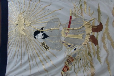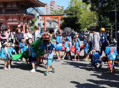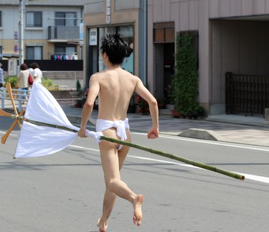 津島神社に走って布鉾を納める市江の鉾持ち衆
