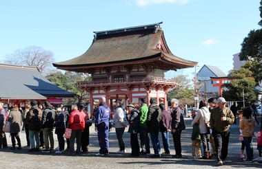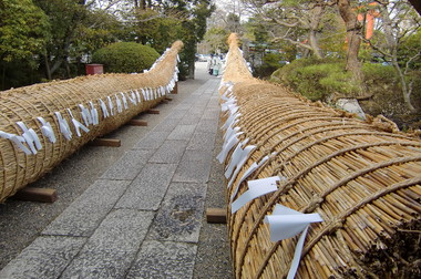 津島神社に走って布鉾を納める市江の鉾持ち衆