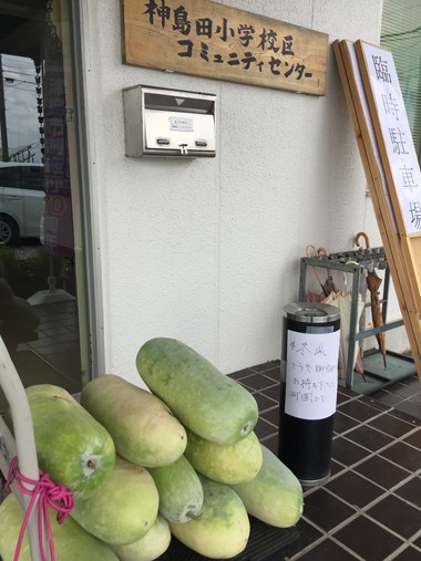神島田コミュニティは地域のふれあいの場所(冬瓜配付中)