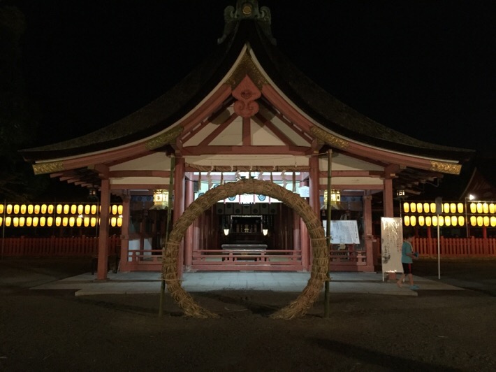 闇夜に浮かぶ神社の本殿で、心を落ち着けてお参りしてきました。なんだか、心が軽くなったような気がします。