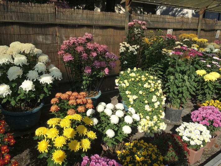 津島神社境内にて、綺麗な菊がお出迎えしてくれます。
