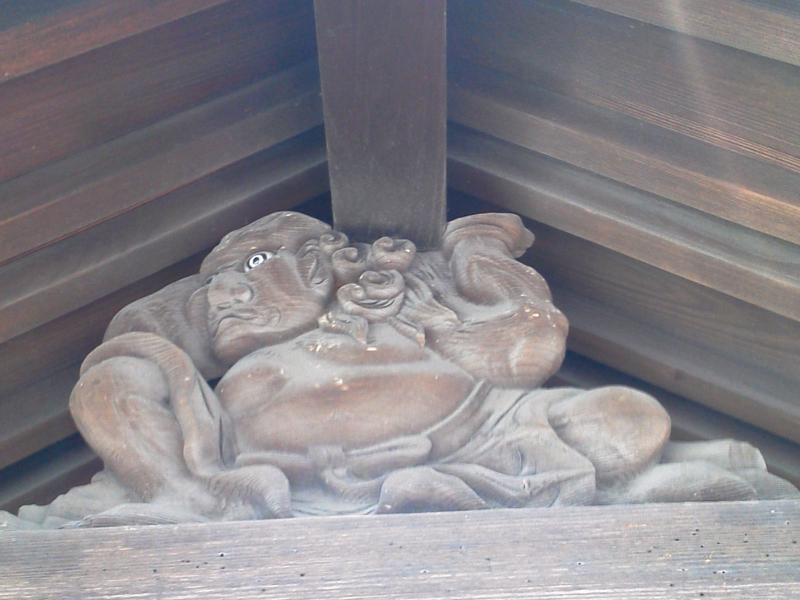 鬼でしょうか、力士でしょうか、屋根を支えています。