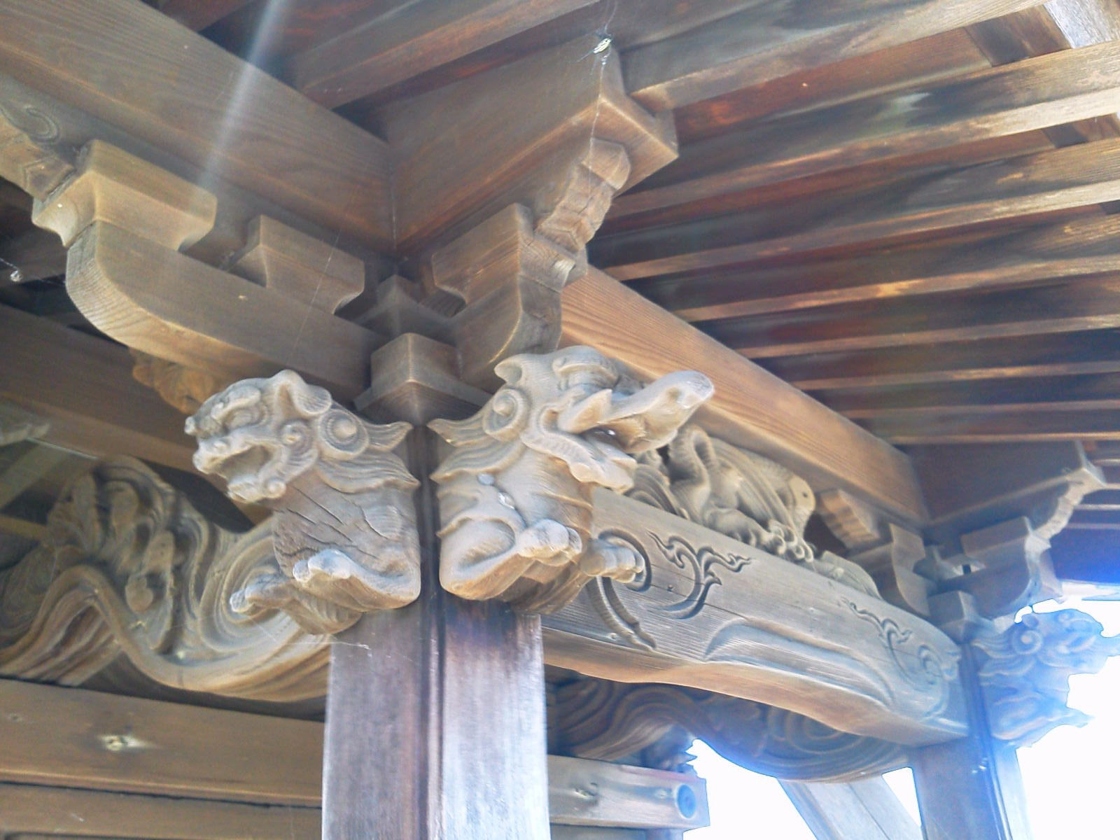 中一色の集落の東の入り口にある地蔵堂です。名古屋側から日光川を越えたところにあたります。この規模の地蔵堂では、切り妻・妻入りをよく見かけますが、これは違っています。屋根瓦もきちんとしています。彫刻も。中一色の集落には、他にも、いくつかの地蔵堂があります。