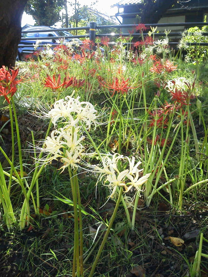 彼岸花というと、「赤」ですが、「白」も少し混じって咲いています。