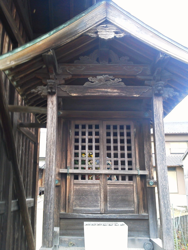 村の真ん中にあるお寺の仁王さんがいる門(津島では珍しいです)の脇にあるお堂です。