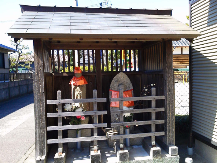 白浜の集落にある神社の隣にあったお寺のところに、石のお地蔵さんともう一人、並んでいました。雨ざらしにならないように、屋根をかけて。