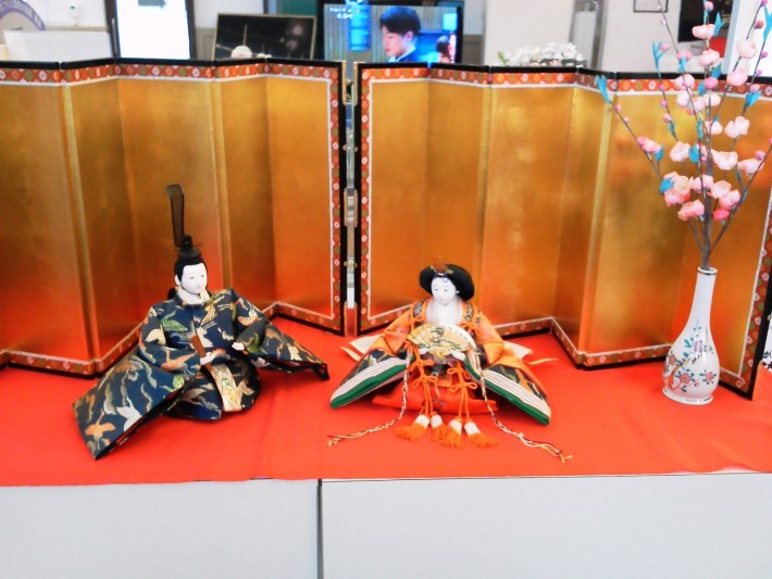 観光交流センターの入り口に飾られているお雛様。たぶん、昭和のお雛様でしょう。かなり大きな造りです。段飾りなのですが、大きいので、全部は飾れないとかで、お内裏様とお雛様だけ…ちょっと寂しそうです。