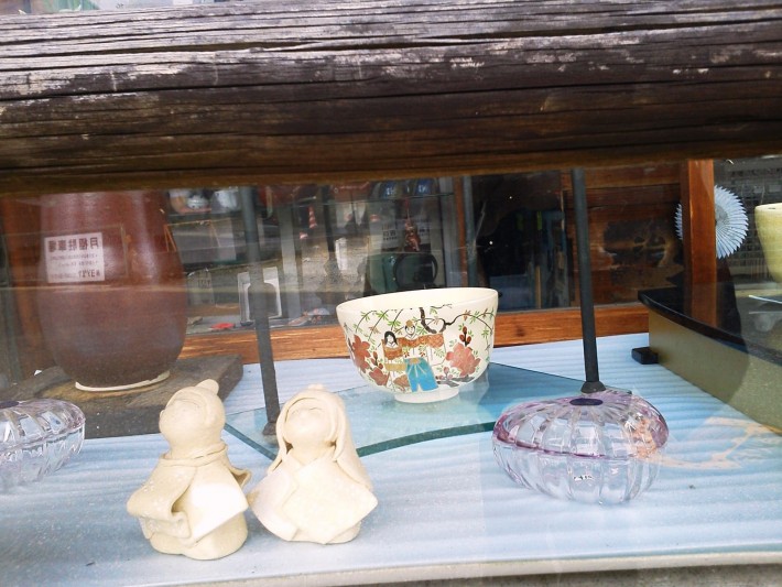 お茶を商いされているお店の、昔の造りのショーウィンドー?です。お雛様が描かれたお茶碗や、お人形。季節毎に、飾りつけが替わります。こうした昔からのショーワインドー?は、少なくなってきていますが、このまちには、まだまだ残っています。