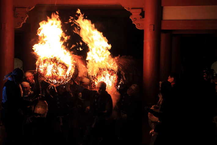 楼門をくぐり抜ける時が、一番、緊張する瞬間ですが、かつぐ消防団の人たちも、見る側の私たちも、ともに、緊張感がクライマックスに達します。
