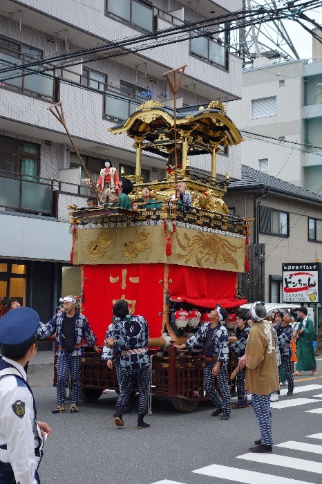 今日と明日の二日間は尾張津島秋祭り。津島駅東にて今市場祭、小中切の山車に遭遇しました。電線をクリアしながらの方向転換は大変です!!