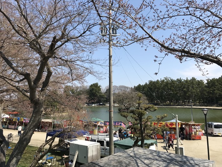津島市の天王川公園の桜は開花には、まだ早いですが、屋台が並びお花見の方が多く訪れています。