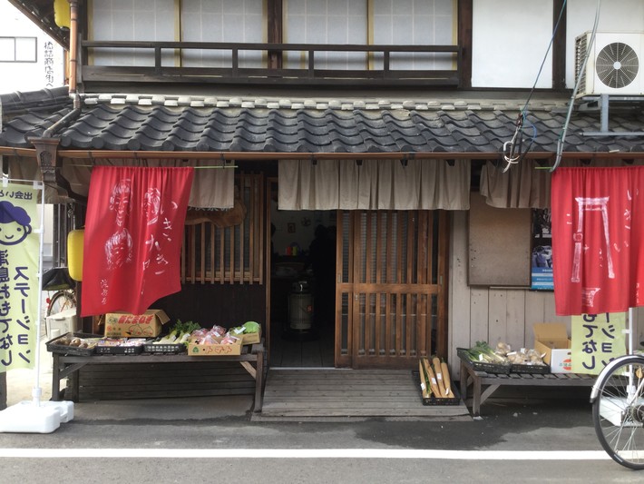 津島市本町地内の「旧、魚長さん、店舗」で、地元の方が栽培、収穫の野菜や可愛い手作リの手芸品等、楽しく販売されています。「お年寄りだなんて」?、まだまだ、お元気な皆さんが、笑顔でお待ち致してま〜す。