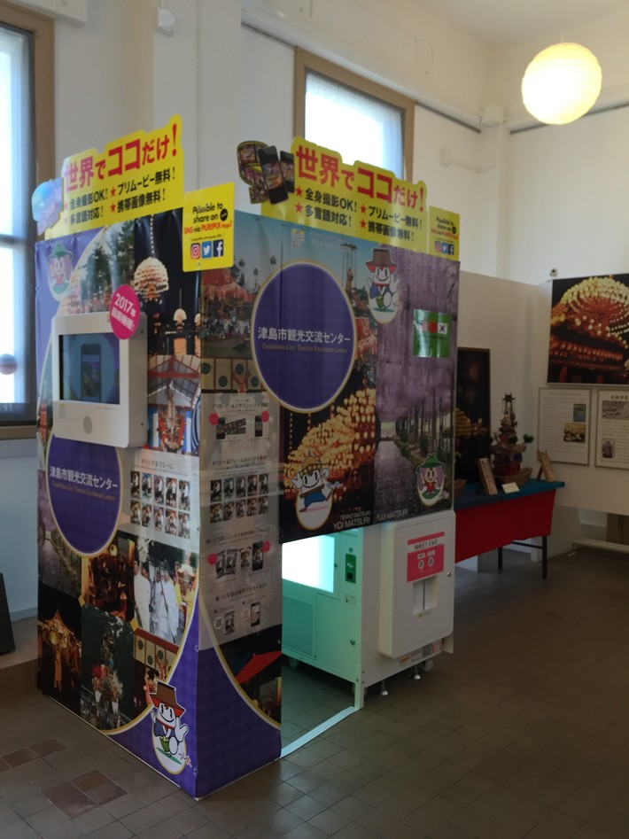 昨日設置されたばかりだというプリクラ機です。600円で、津島のまつりなどの風景をはめ込んだ様々な種類の写真が撮れるとのことで、多くの人が楽しそうに遊んでいました。