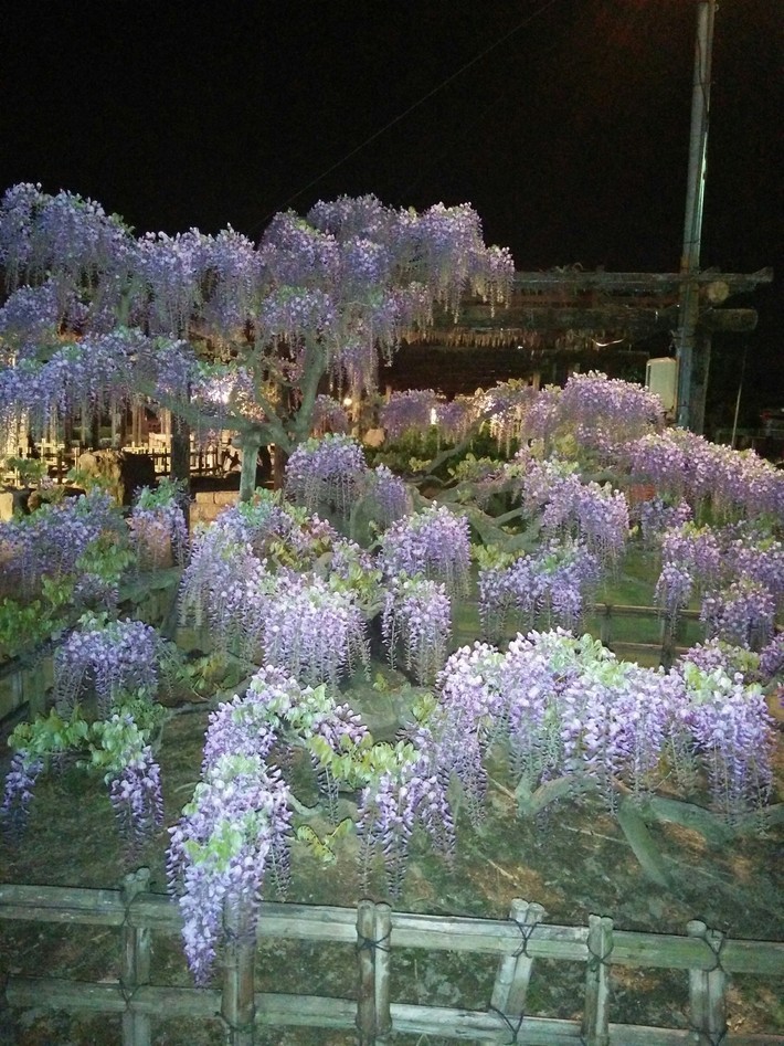 天王川公園の藤棚がライトアップされています。まだつぼみが多いですが、場所によっては咲いている木もありました。今年はGWがちょうど藤棚の見頃になると予想します!藤まつりは今日から始まっていますので、散策してみてはいかがでしょうか?