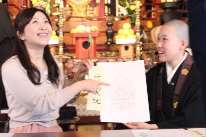 11月6日NHKテレビ「ほっとイブニング」で宝寿院本堂での写仏の様子が生放送されました。宝寿院副住職落合宥貴さんがインタビューに答えていました。