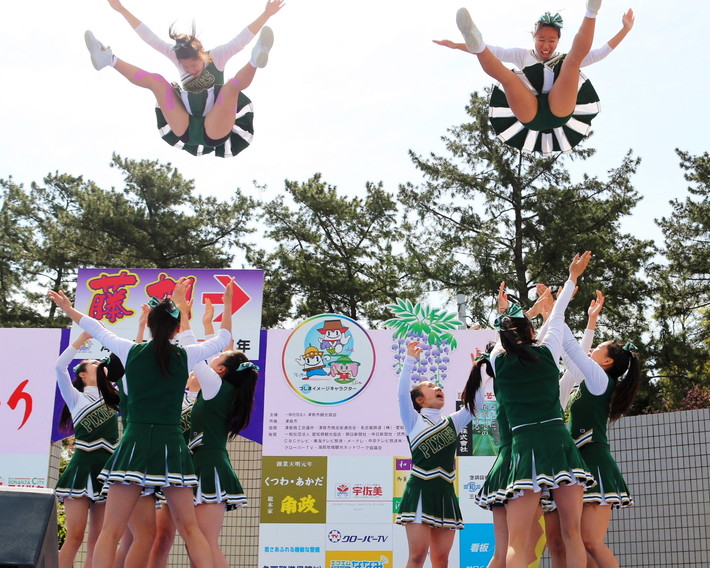 清林館高等学校のチアリーディングが藤まつりのオープニングを飾りました。観ていてハラハラドキドキの演技でした。素晴らしかったです。