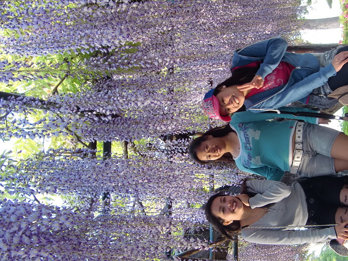 藤の花を見に大勢の人が見えます。外国の人も多いです。