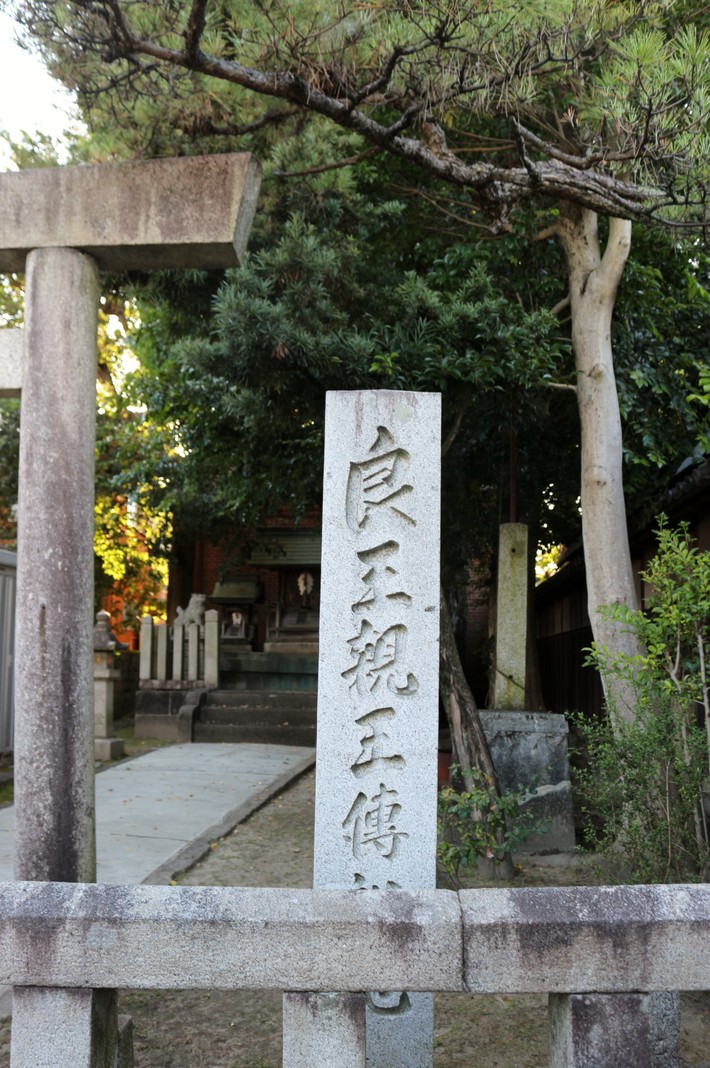 「良王(よしたか)親王伝説地」の石碑があり「良王神社」と呼ばれています。後醍醐天皇のひ孫良王君が、津島に動座し住まわれたそうです。戦国時代より前の歴史があります。寺院横の小路に面しています。米之座町