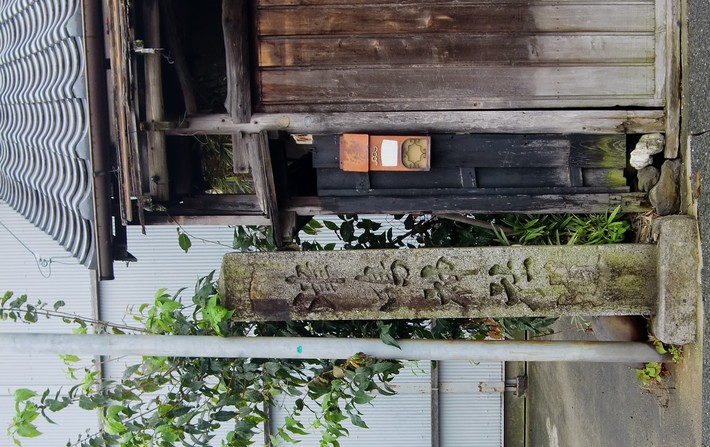 池麸町の本蓮寺の山門西すぐ。矢印ではなく手の指で指しています。