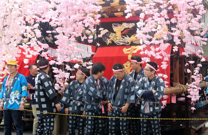 津島市神守町一里塚前で「からくり披露」されます。南町、中町、上町の3台の山車です。